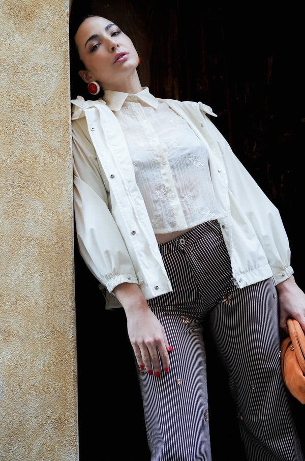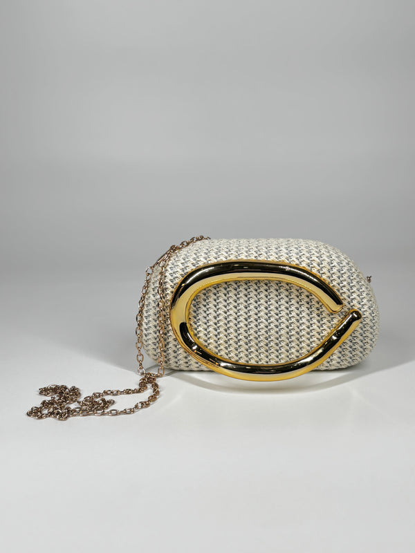 Clutch in Paglia Intrecciata con Manico Gioiello - Bianco