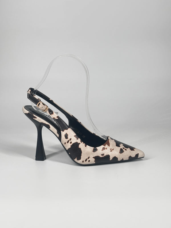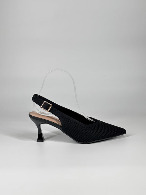 Scarpa Slingback con Cinturino e Tacco Geometrico - Nero