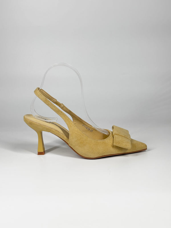 Slingback a Punta in Suede con Fiocco - Giallo Pastello