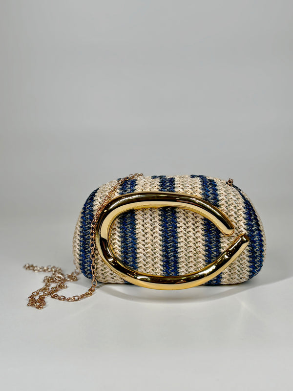 Clutch in Paglia Intrecciata con Manico Gioiello - Blu