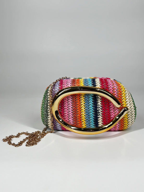 Clutch in Paglia Intrecciata con Manico Gioiello - Multicolor