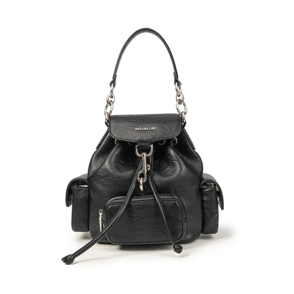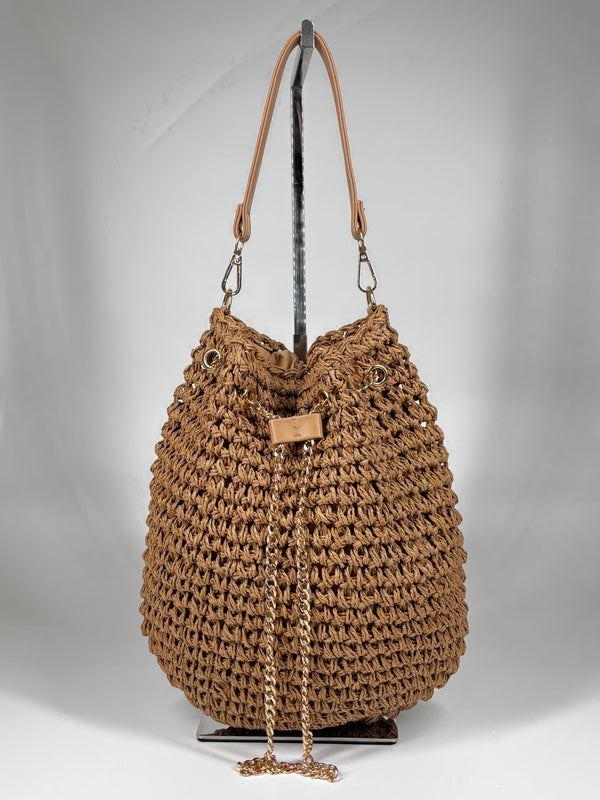 Mini Bag in Pelle Martellata con Chiusura Bamboo - Cammello