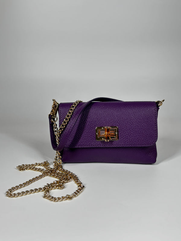Mini Bag in Pelle Martellata con Chiusura Bamboo - Viola