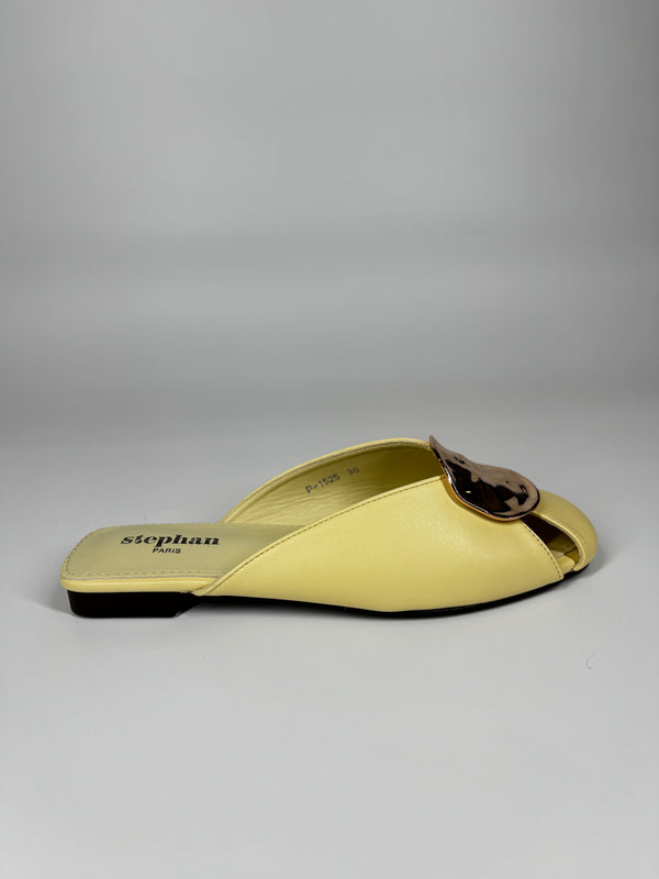Mule Flat in Similpelle con Maxi Borchia Oro - Giallo