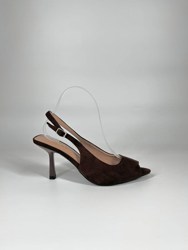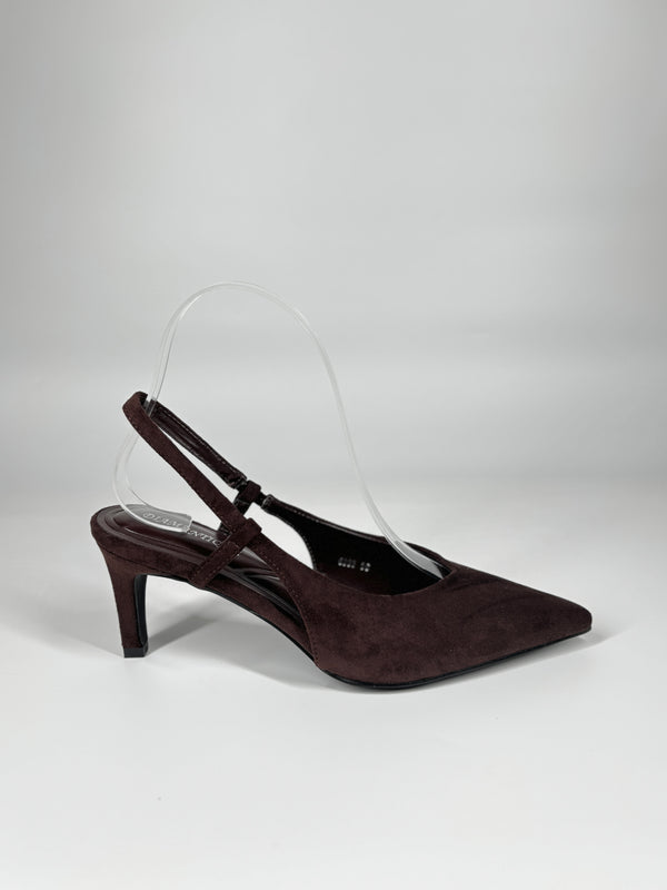 Slingback a Punta in Camoscio - Marrone