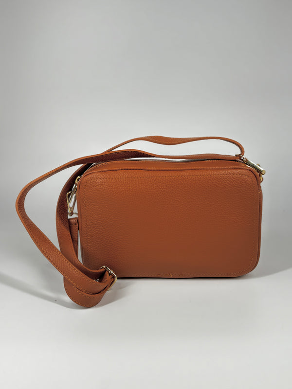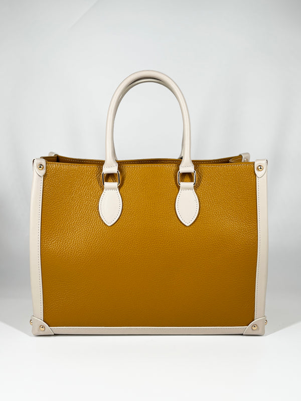 Borsa in Vera Pelle Bicolor – Senape e Beige