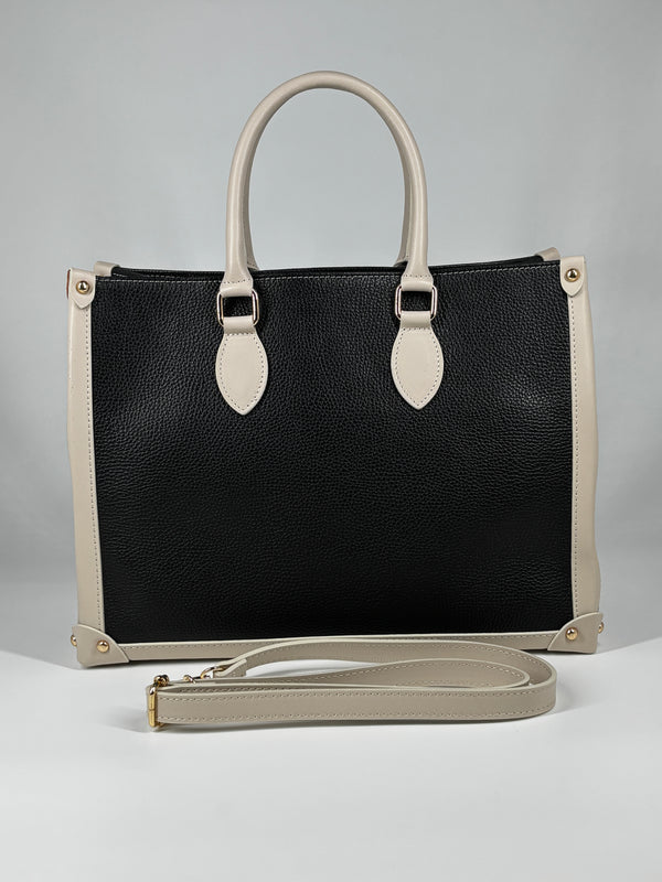 Borsa in Vera Pelle Bicolor – Nero e Beige