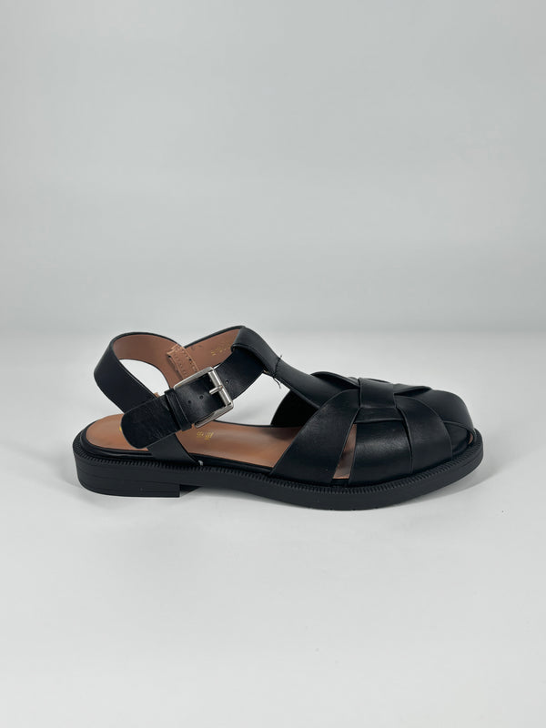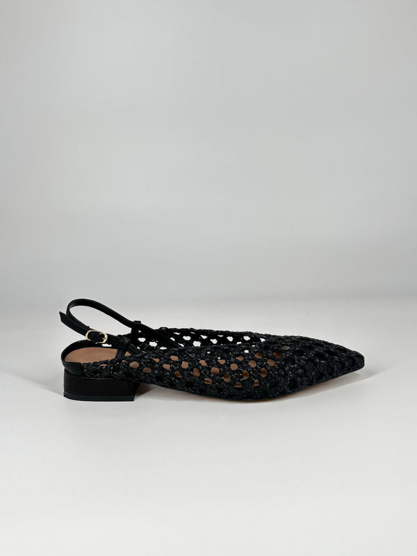 Sandalo Slingback Intrecciato in Pelle – Nero