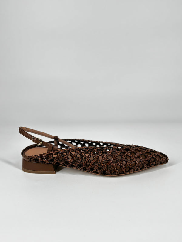 Sandalo Slingback Intrecciato in Pelle – Sigaro