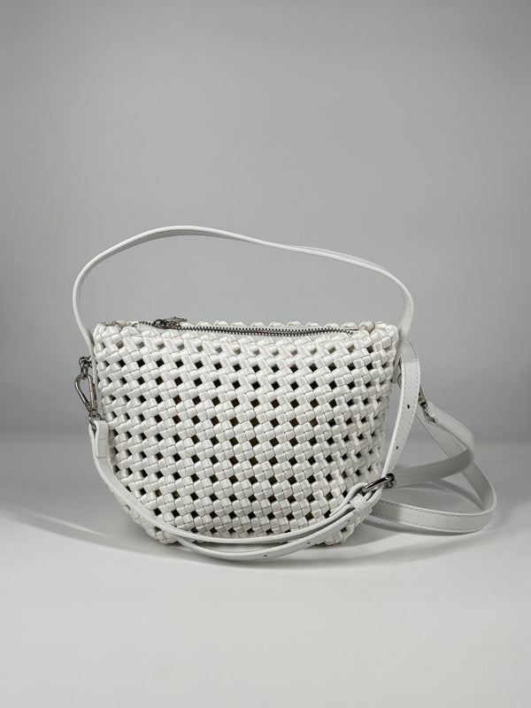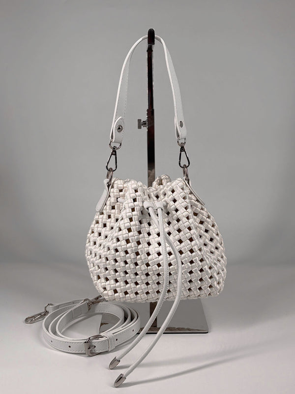 Borsa a Secchiello in Intreccio Satin – Bianco