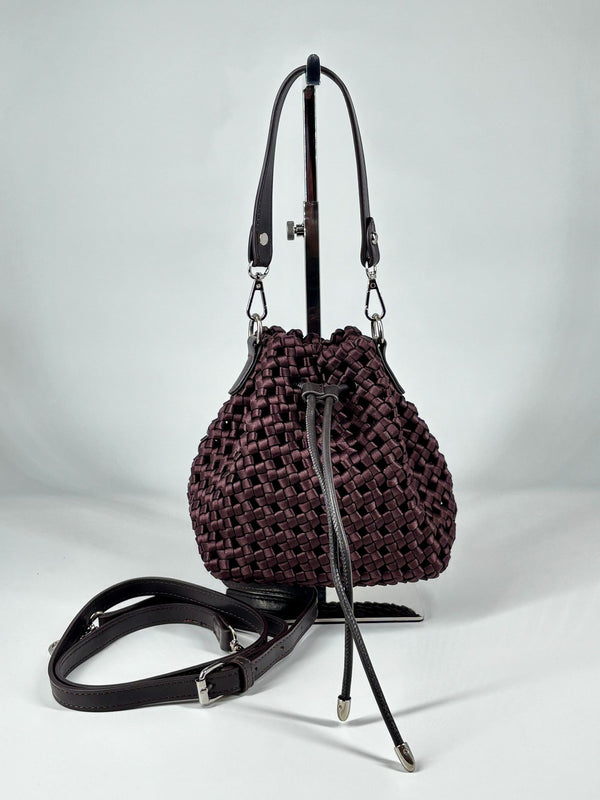 Borsa a Secchiello in Intreccio Satin – Chocolate Brown