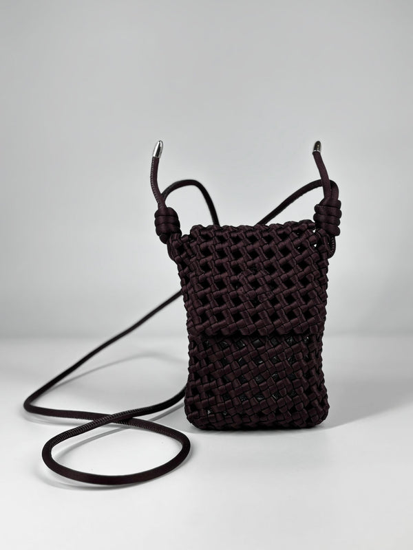 Porta Cellulare Intrecciato in Satin - Marrone