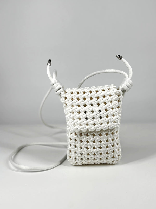 Porta Cellulare Intrecciato in Satin - Bianco