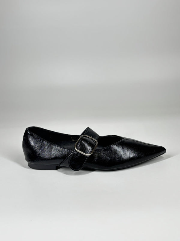 Ballerina Elegante a Punta con Cinturino - Nera