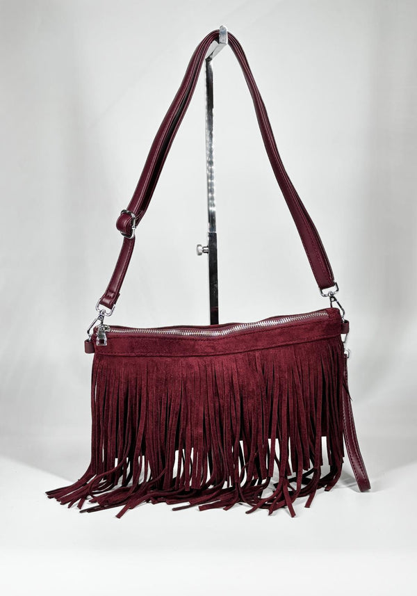 Borsa Scamosciata con frange - Bordeaux