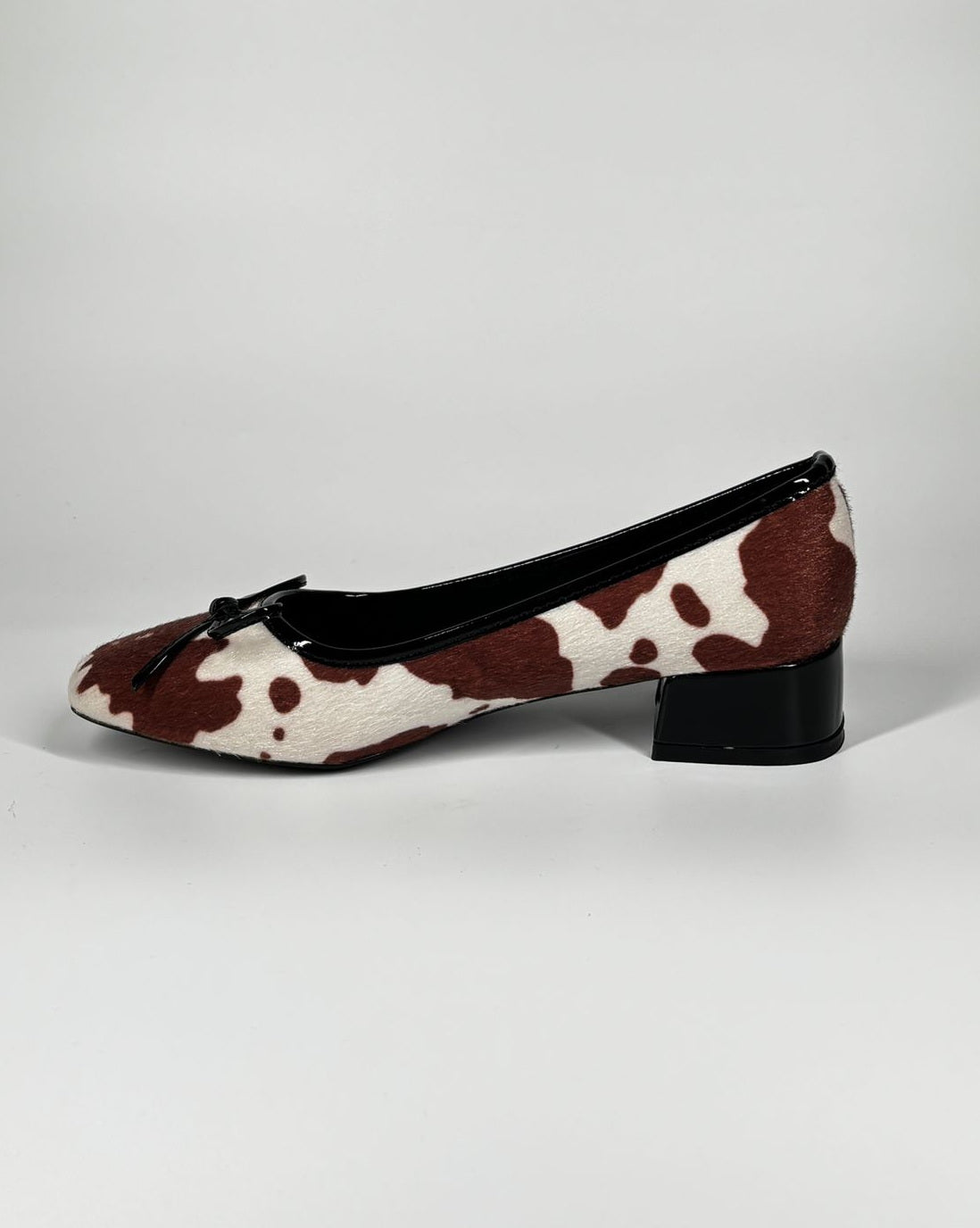 Décolleté "Muu-Chic" in Stampa Mucca con Tacco Basso - Marrone