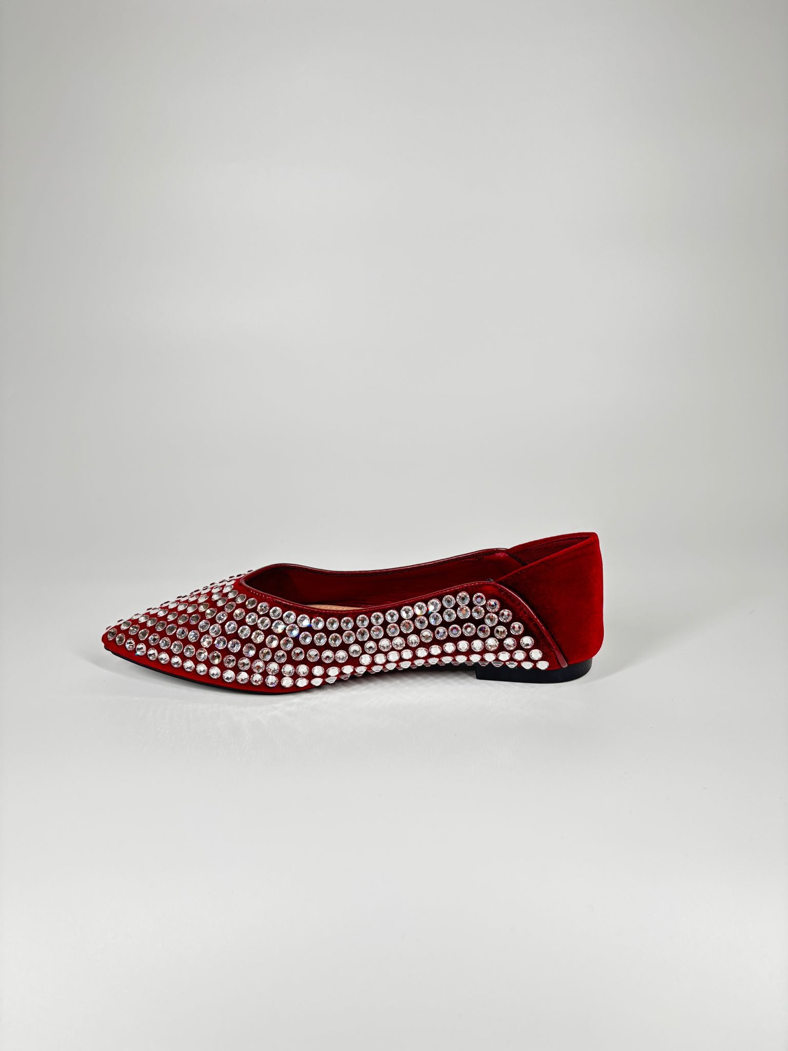 Ballerina Flat - Velluto Bordeaux e Strass Luminosi