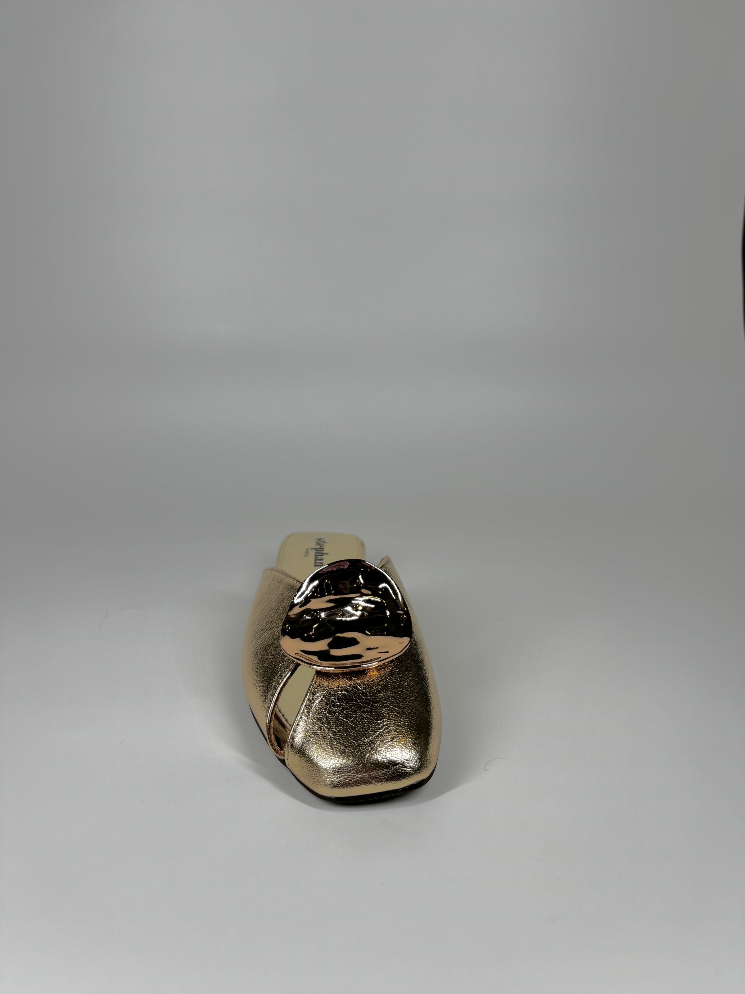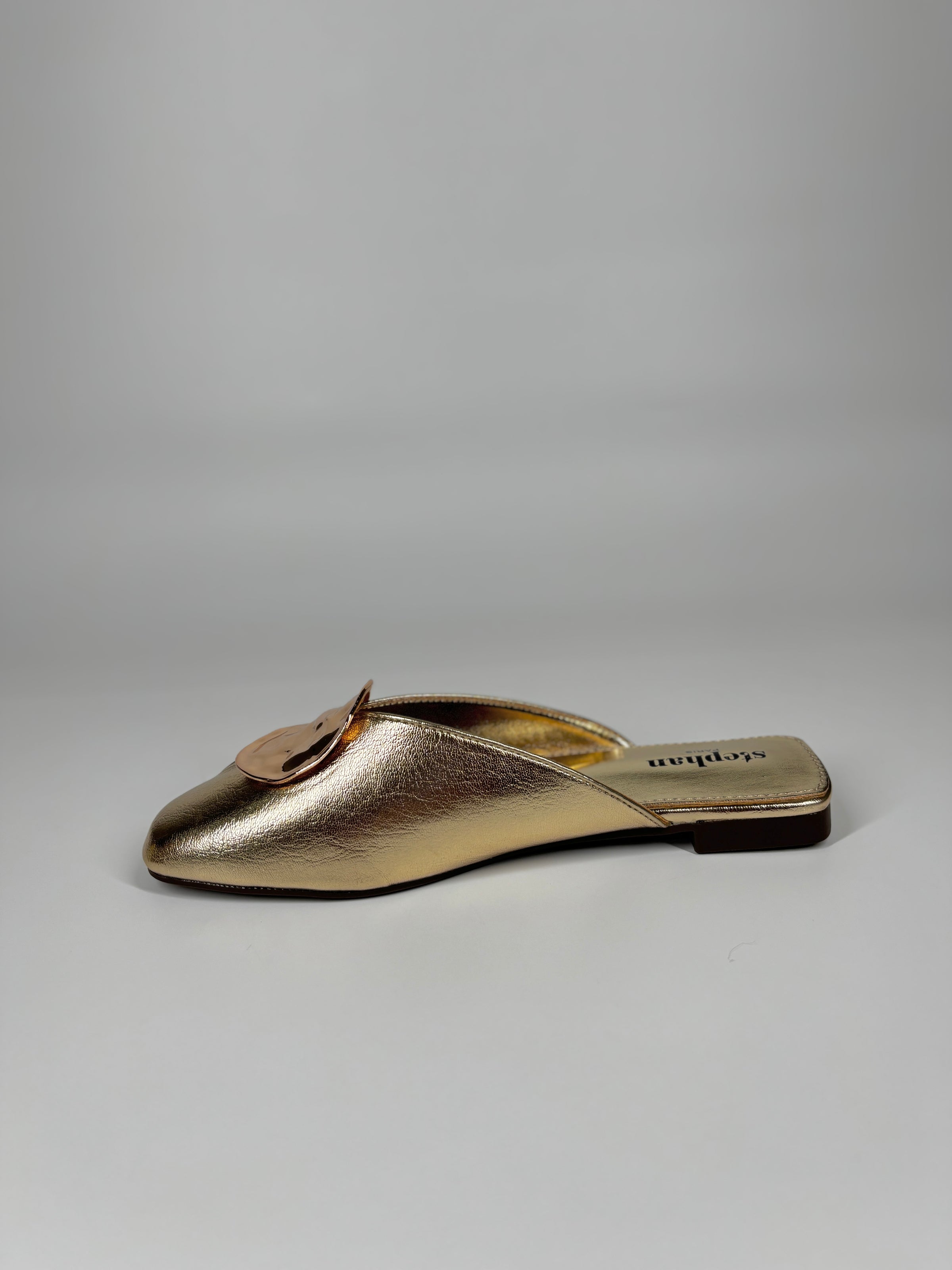 Mule Flat in Similpelle con Maxi Borchia - Oro