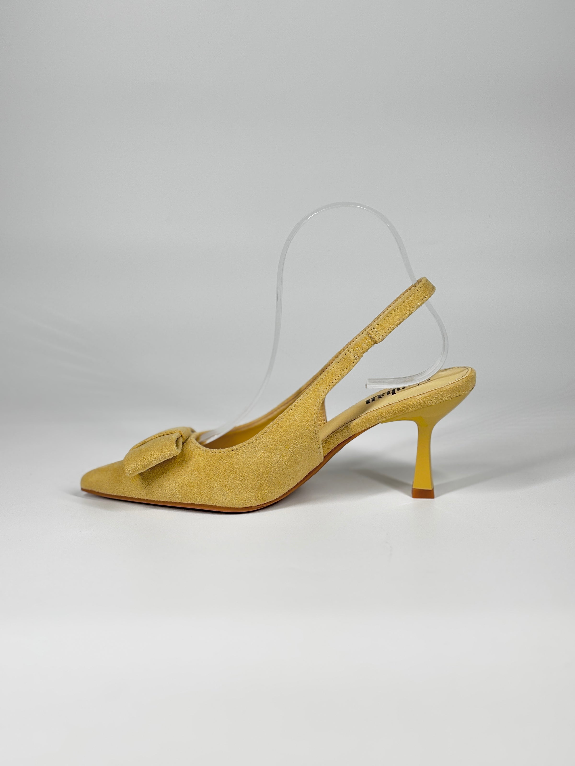 Slingback a Punta in Suede con Fiocco - Giallo Pastello