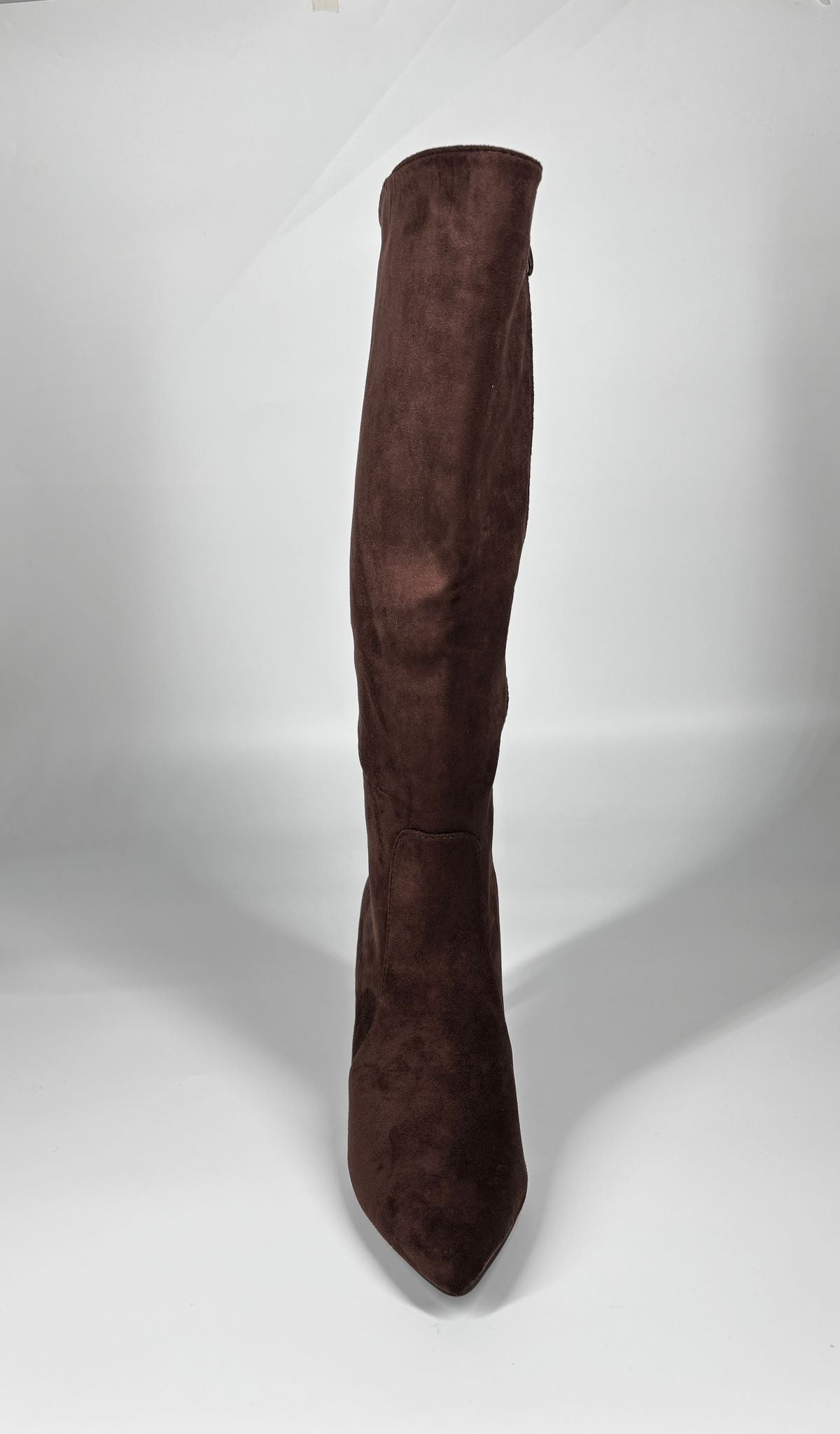 Stivale Alto in Camoscio con Tacco Stiletto - Testa di Moro