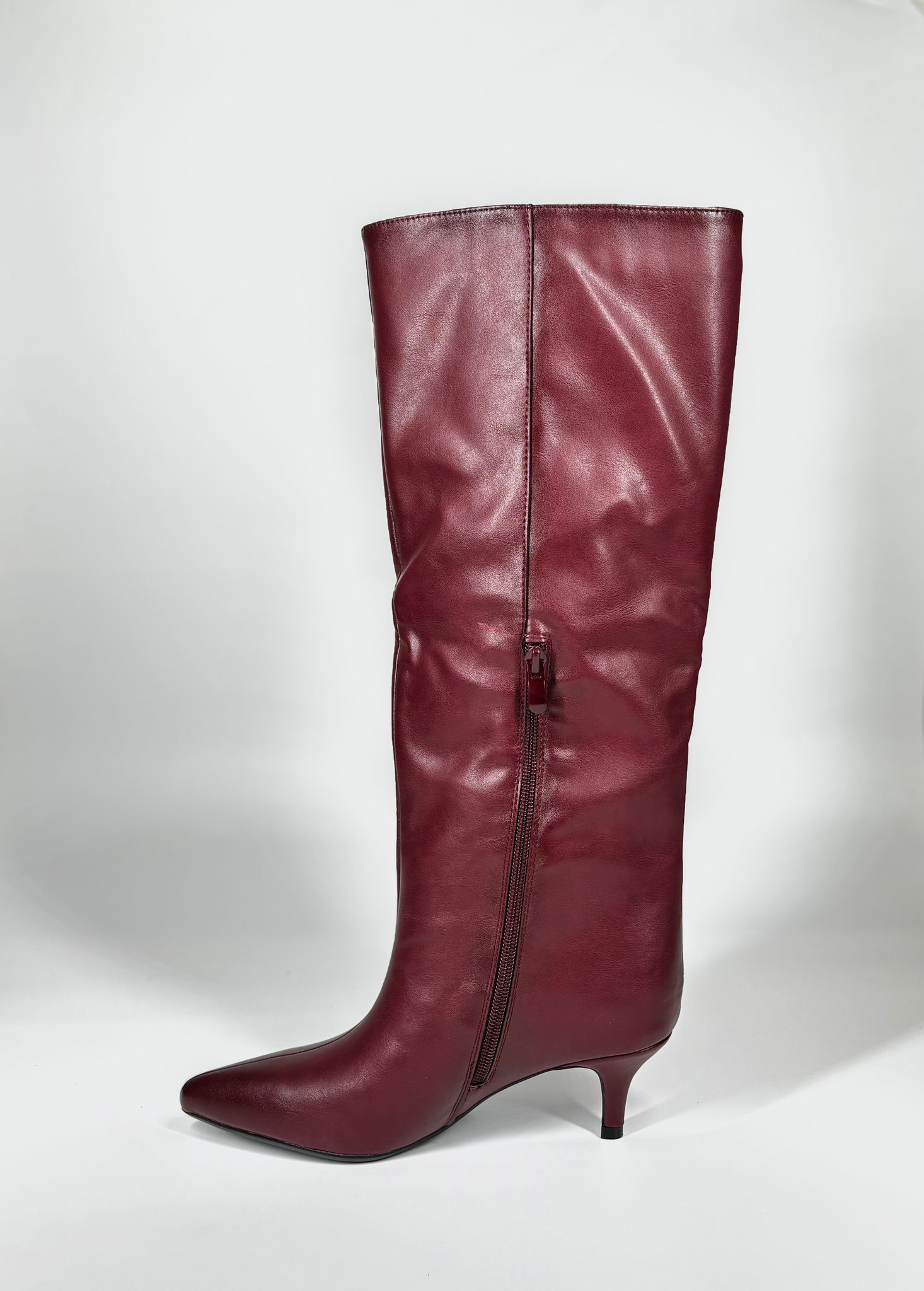 Stivale Alto in ecoPelle con Tacco Kitten - Bordeaux