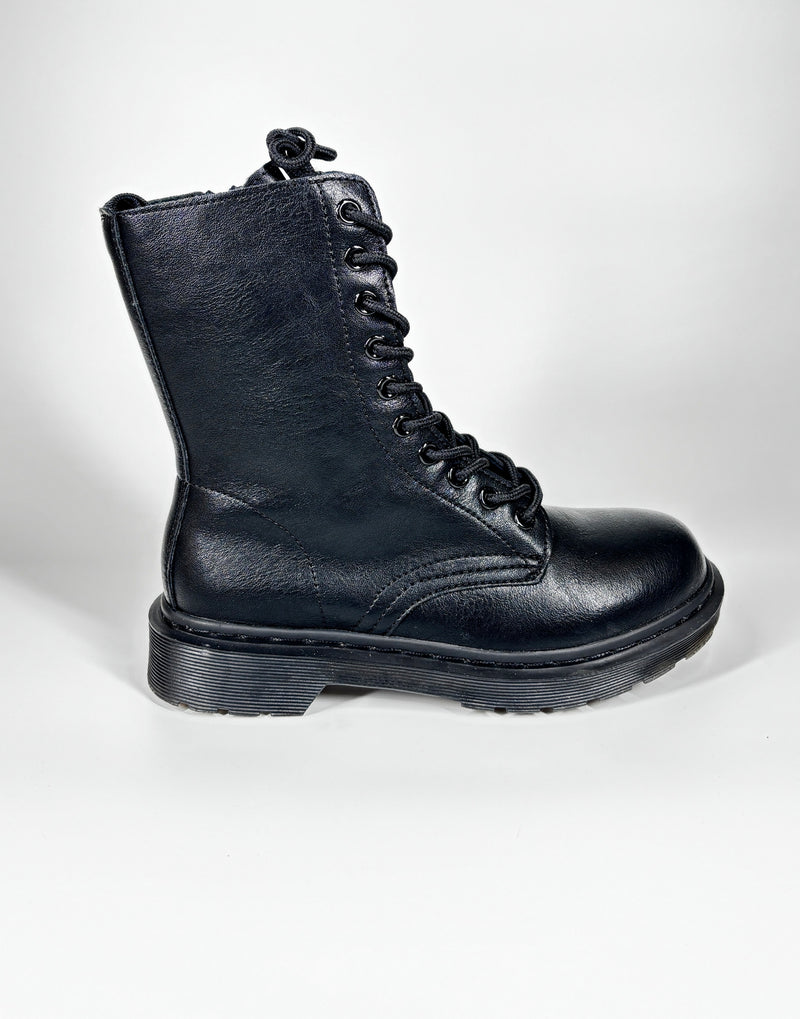 Anfibi in ecopelle con lacci Zip Laterale - Nero