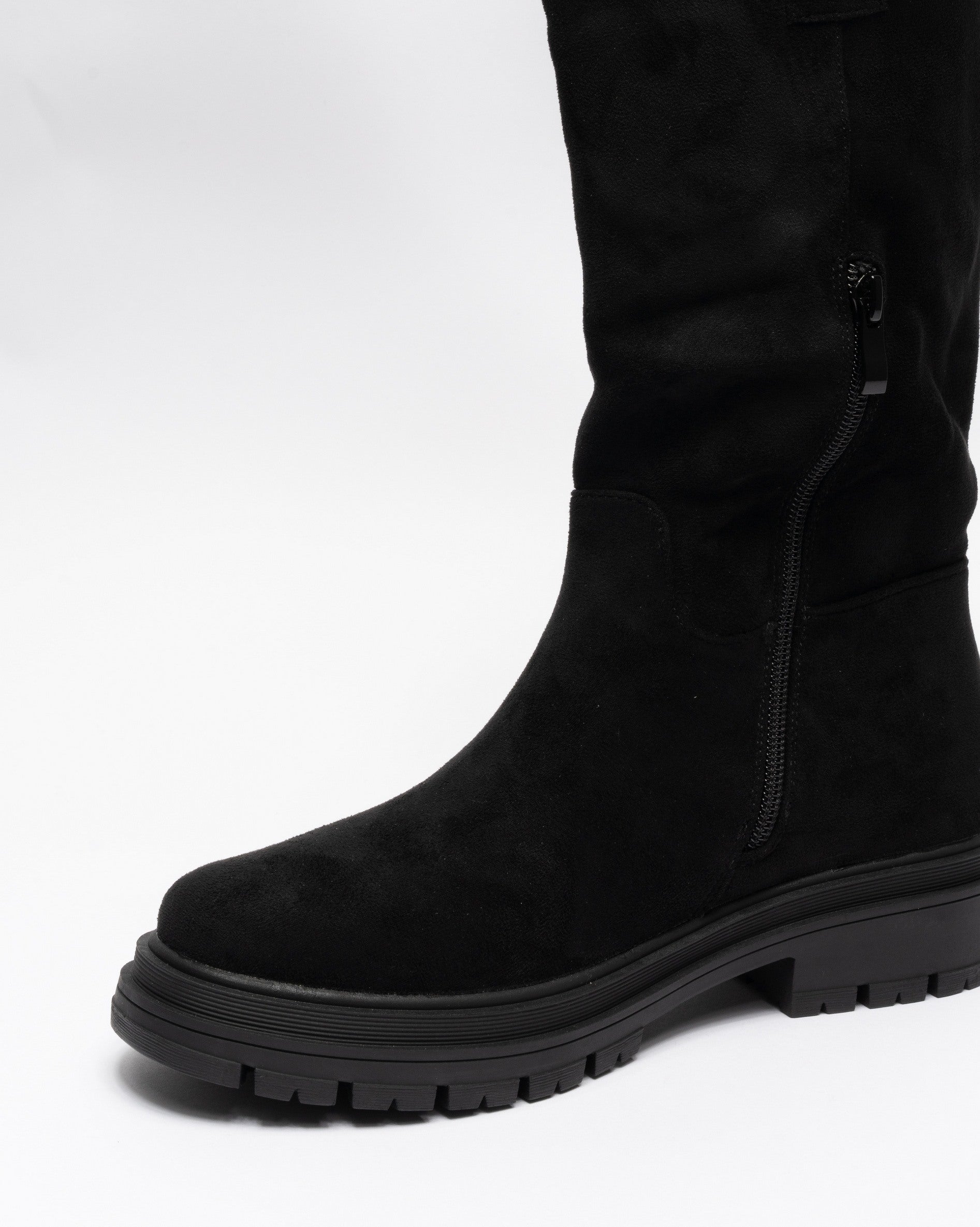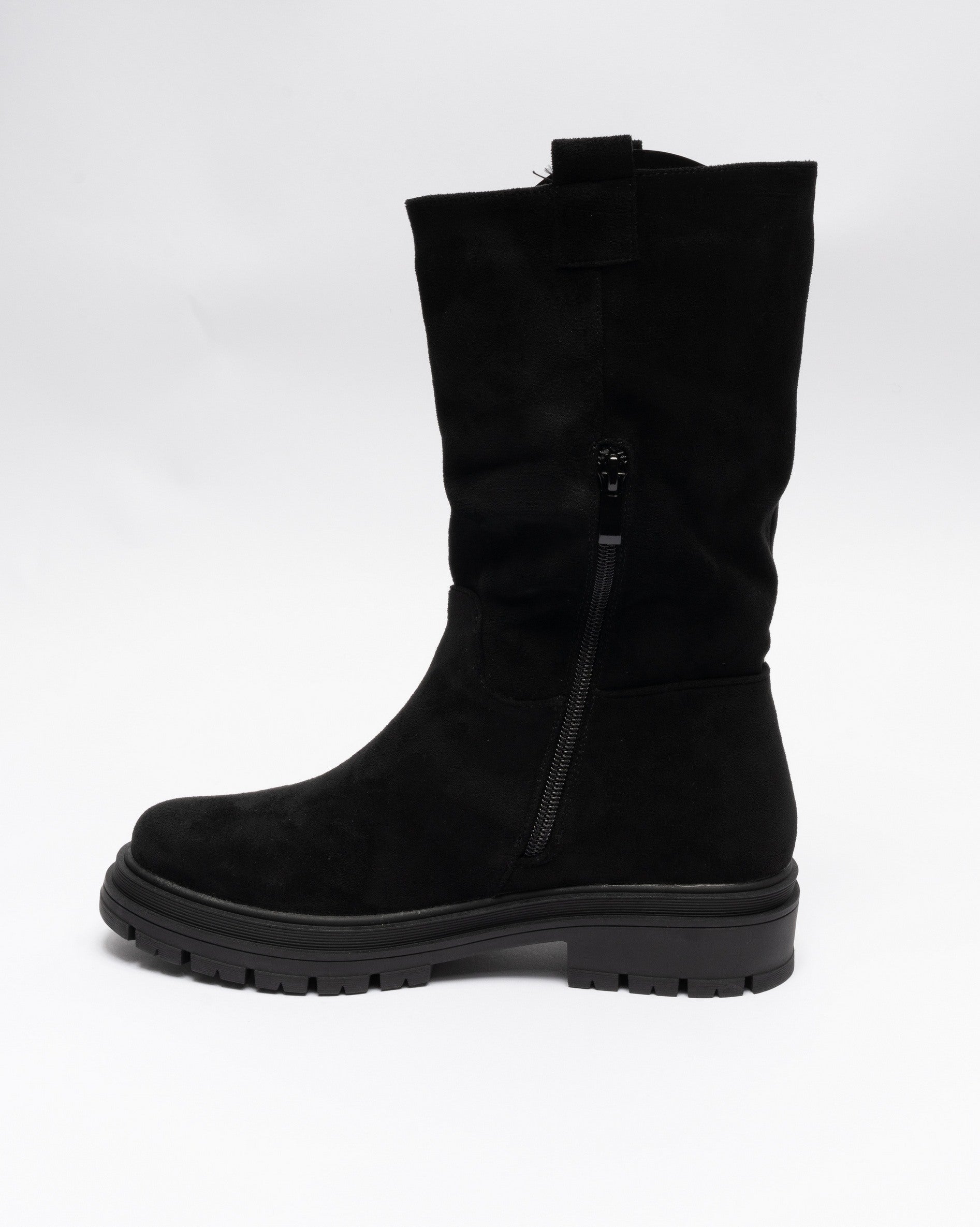 Stivaletti in ecocamoscio a punta tonda - NERO